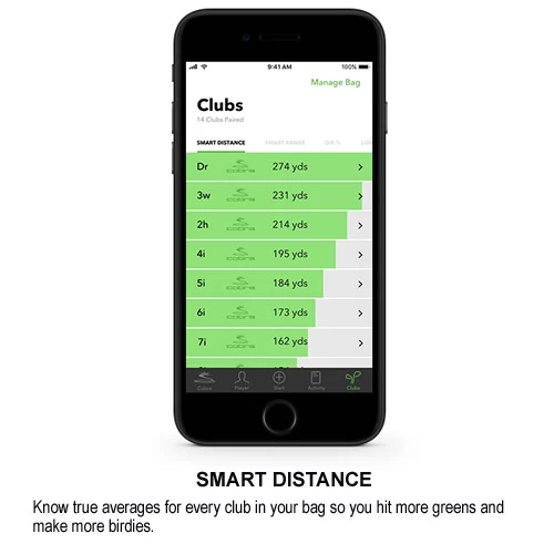 | COBRA CONNECTâ„¢ provides advanced GPS distances on over 40,000 courses worldwide, so users can pinpoint exact distances (in yards or meters) to any point on the course. | Know true averages for every club in your bag so you hit more greens and make more birdies. | Know your strengths and weaknesses for every club so you can practice more efficiently and shoot lower scores. |