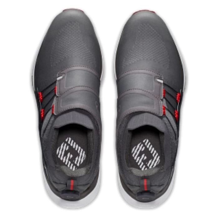 HyperFlex BOA golf shoes for men are specifically tuned for the modern golfer athlete. Hyper powered with a custom molded and integrated thermoplastic side wrap and saddle, this innovative design wraps around your foot to provide the perfect balance of control and stability through your swing while delivering all day walking comfort. HyperFlex features tuned for walking cushioning, added ankle padding, and an innovative, breathable, waterproof performance knit upper so you can play at the highest level.