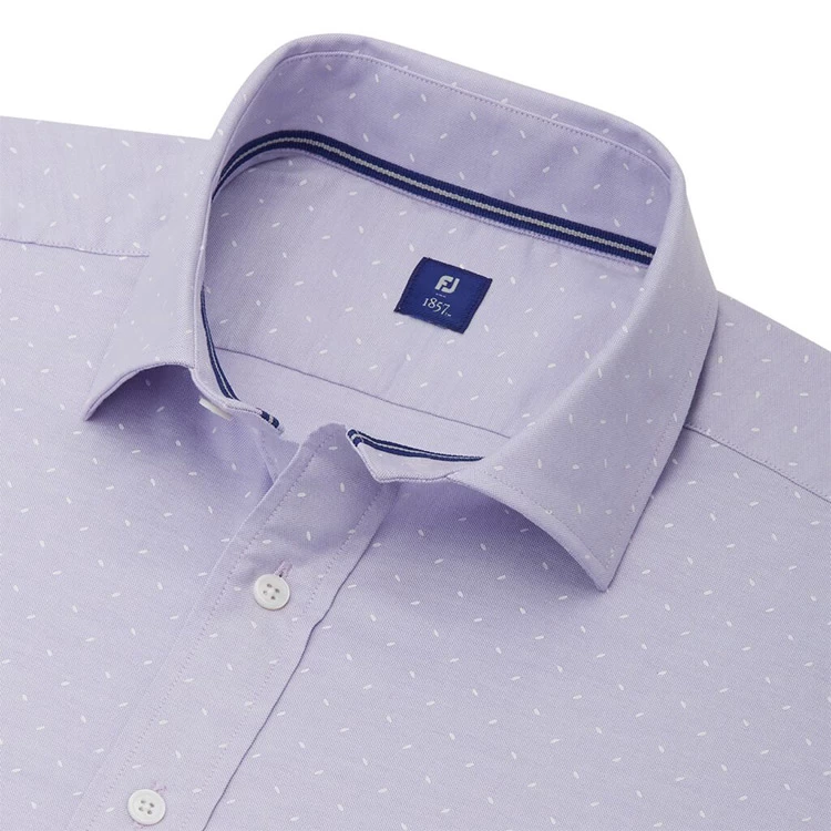A classic button down shirt elevated by premium fabric and understated details. Crafted from stretch cotton oxford overprinted with a white motif.