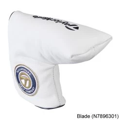 The headcover collection honors Rodman Wanamaker with his initials on the driver cover. 141 on both the fairway and hybrid covers mirror the insignia on the upper pocket of the bag. The putter covers feature a classic blue and gold color scheme.